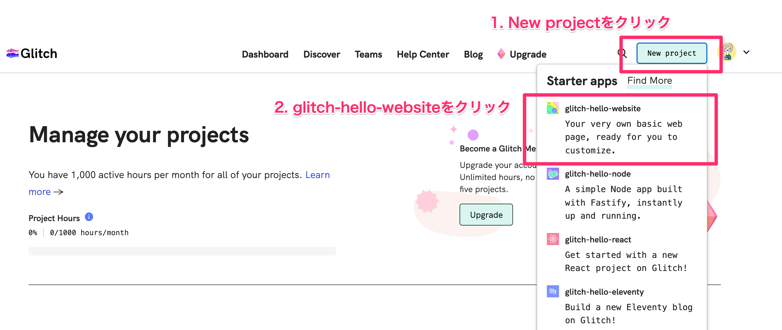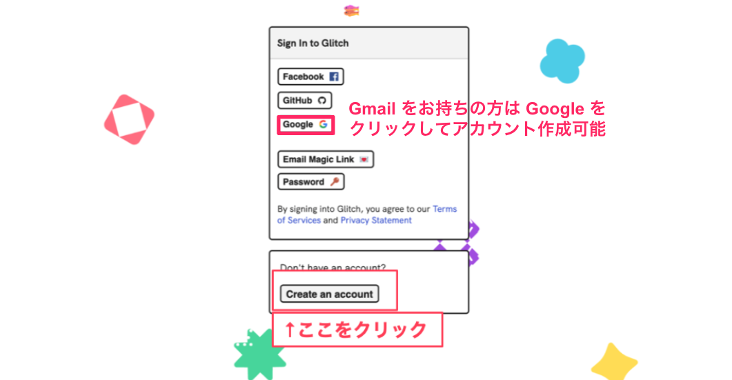 Glitch にアクセスしてアカウントを作ろう