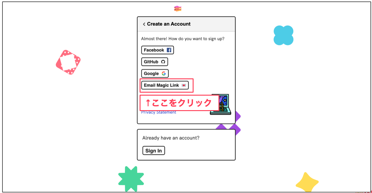 3. 『Email Magic Link』をクリック#