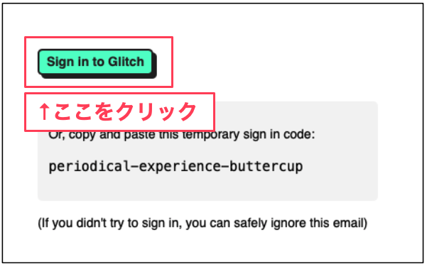 「Glitch」からきたメールを開くと、↓ のようになります。