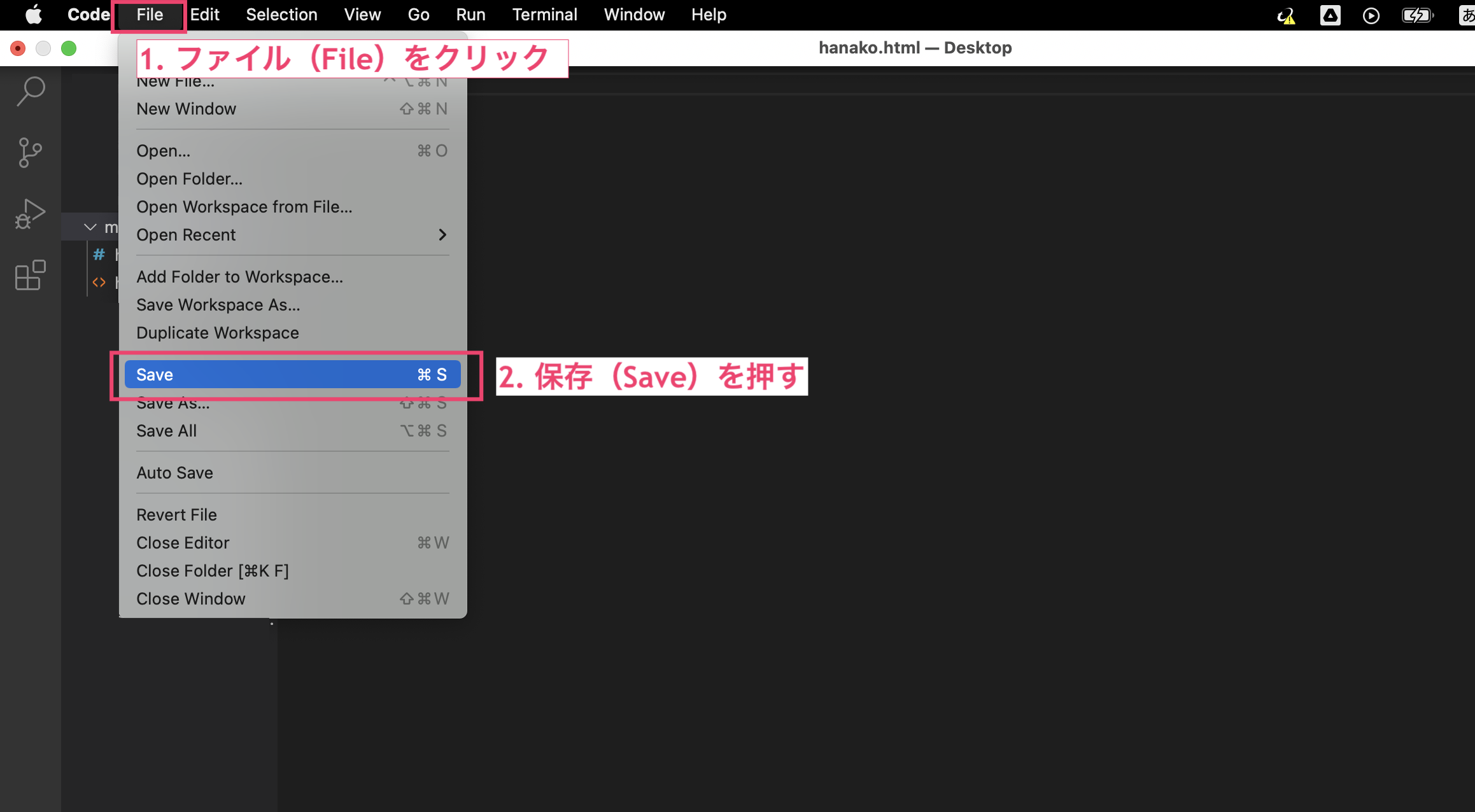 ファイルの内容を変更した後は、必ず VSCode で変更内容を保存しましょう